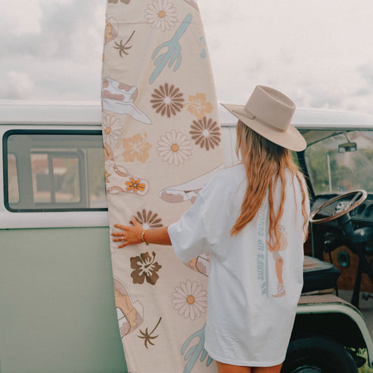 Just arrived! The Tawny Daisy Waffle Surfboard Sok is here — super absorbent, beach-ready, and built to protect. Available in Shortboard, Mid-Length, and Longboard sizes. Get it before it's gone!