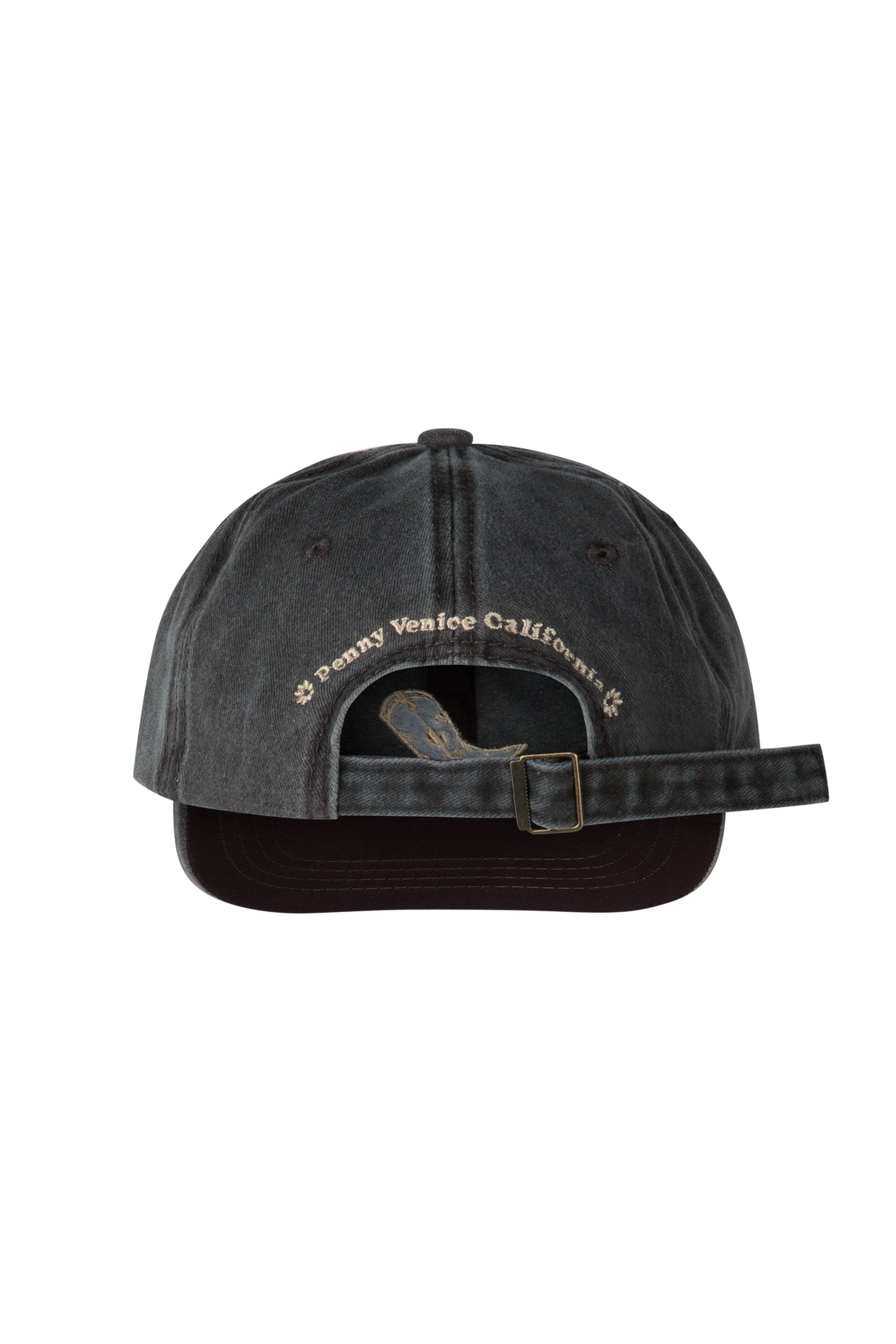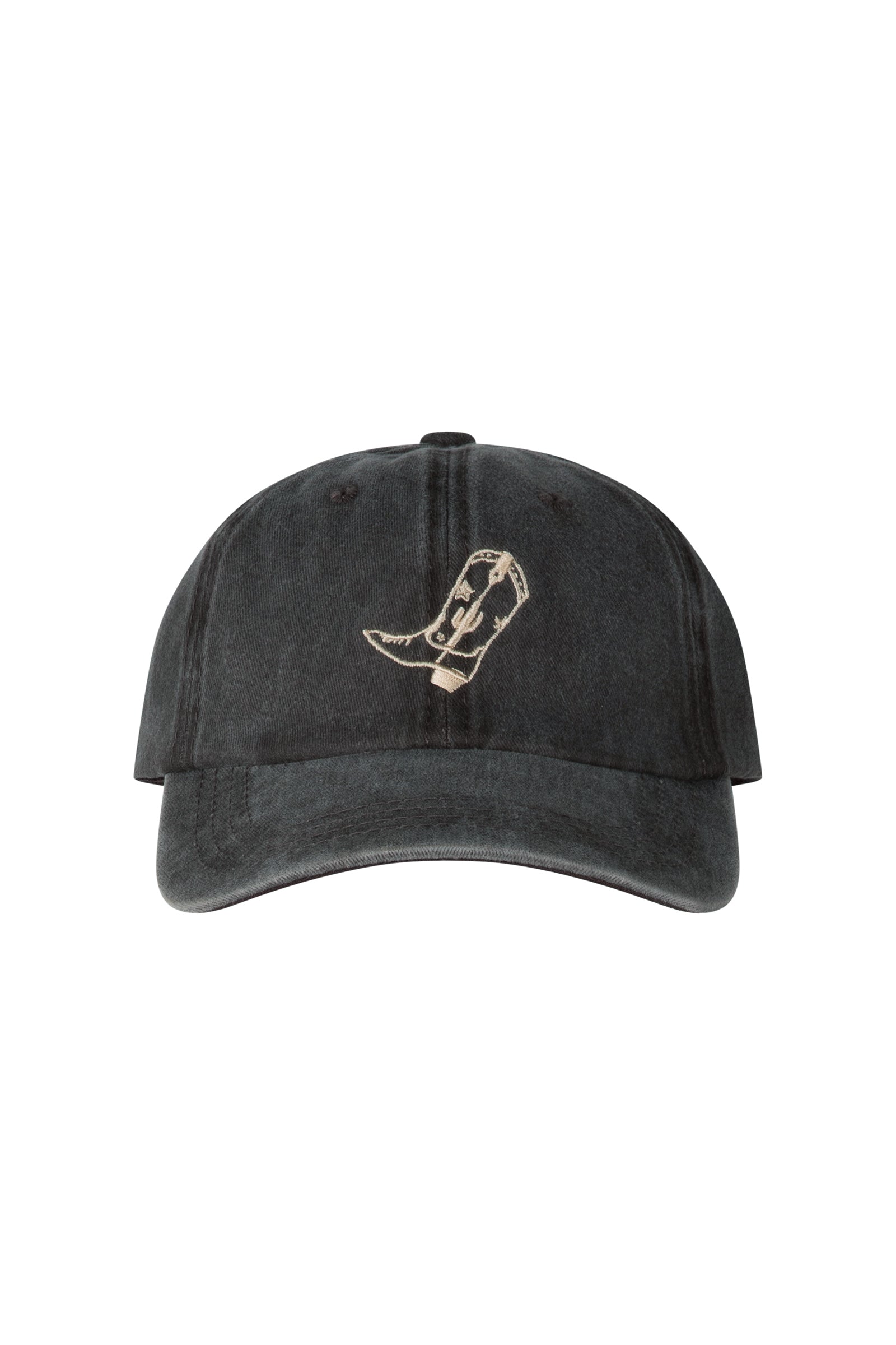 "Top off your look with this washed denim dad cap featuring an embroidered cowgirl boot detail. Perfectly faded for that effortlessly cool vibe, this cap combines laid-back style with a touch of western flair. With an adjustable strap for a custom fit, it’s the ultimate accessory for adventures in the sun, sand, or saddle. 🌵🤠"
