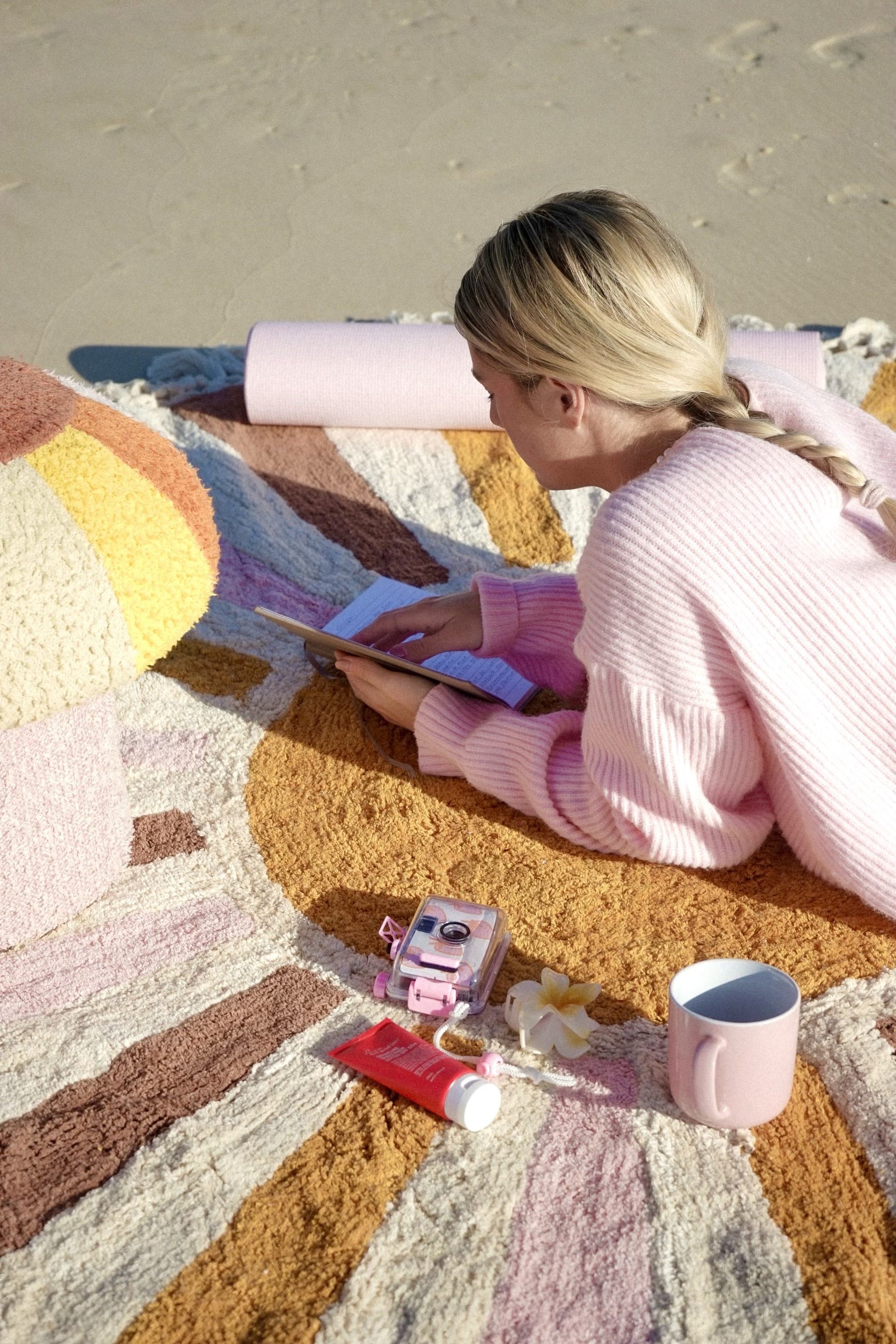 Versatile and stylish, this rug is perfect for adding a pop of personality to your home, and it's also ideal for outdoor adventures. Whether at the beach, on a coastal surf trip, or camping under the stars, the Hand Tufted Sunrise Floor Rug provides a comfortable and stylish place to relax.