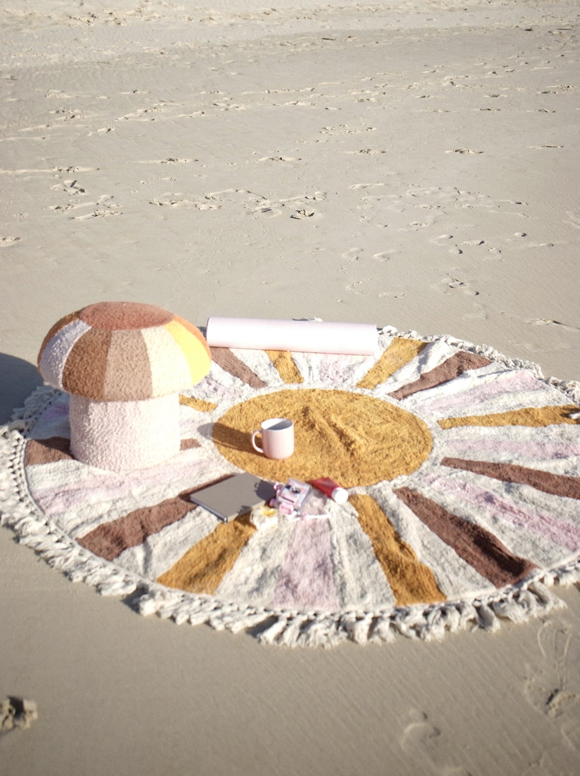 Embrace the retro revival and let your home or outdoor space shine with timeless style with our Hand Tufted Sunrise Floor Rug with Cotton Fringing.