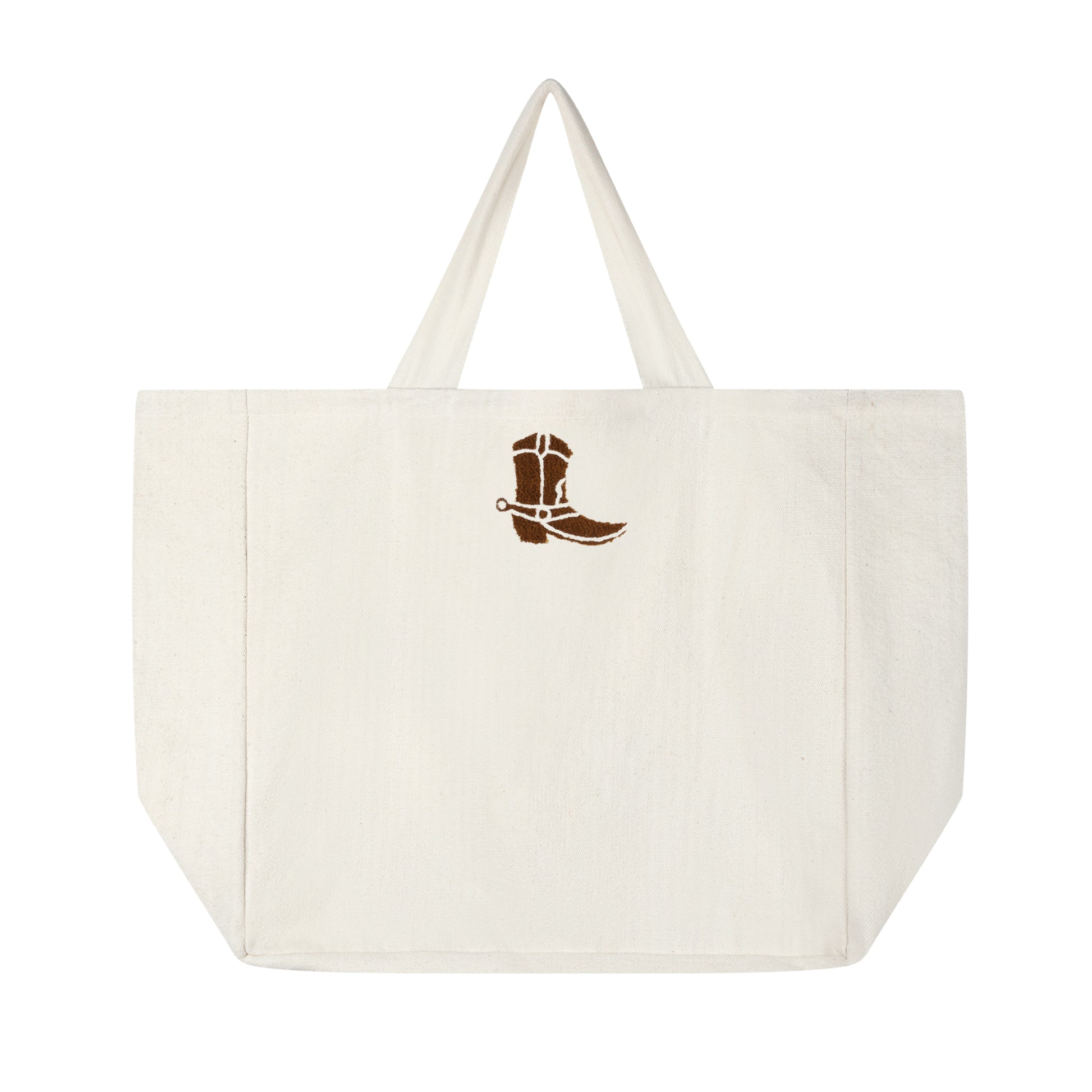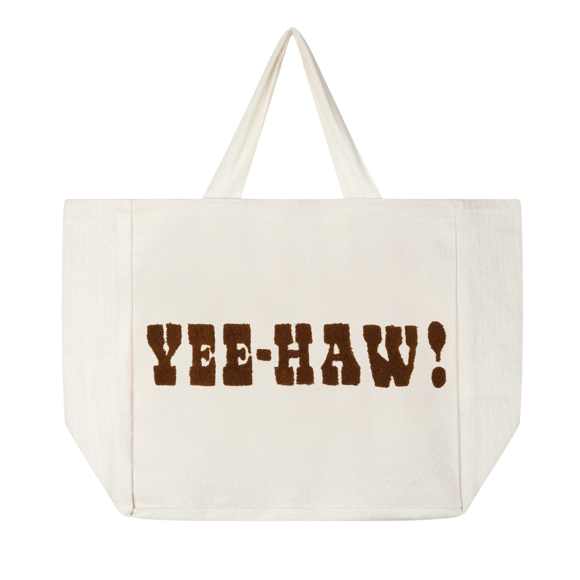 "Say YEE HAW! in style with this large cotton tote bag! Measuring 49cmW x 45cmH x 23cmD, this spacious and durable tote features bold tufted embroidery spelling 'YEE HAW!,' bringing a fun, western-inspired vibe to your everyday essentials. Perfect for beach days, market trips, or carrying all your daily must-haves with ease and flair. 🤠✨"